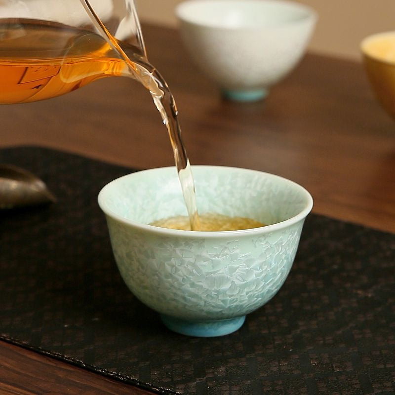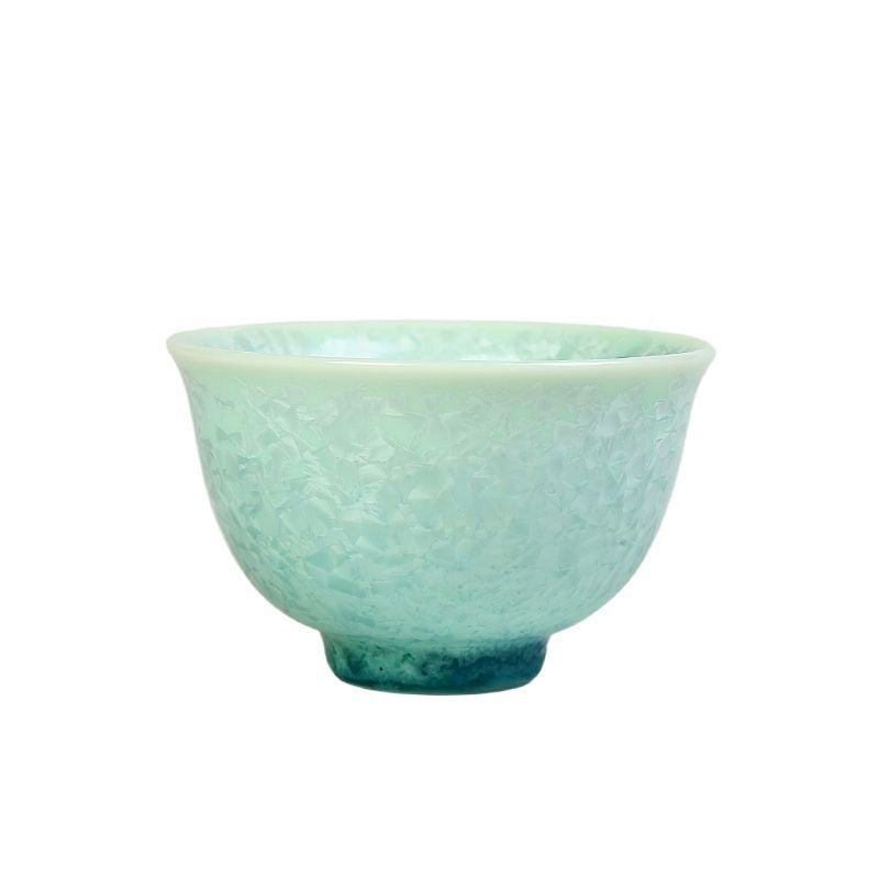 Discover elegance and artistry in your gongfu tea ceremony with this luminous crystal glaze tea cup. Crafted from natural mineral ceramic and fired using traditional techniques, it features a petal-like crystalline texture that creates a serene and poetic tea experience.