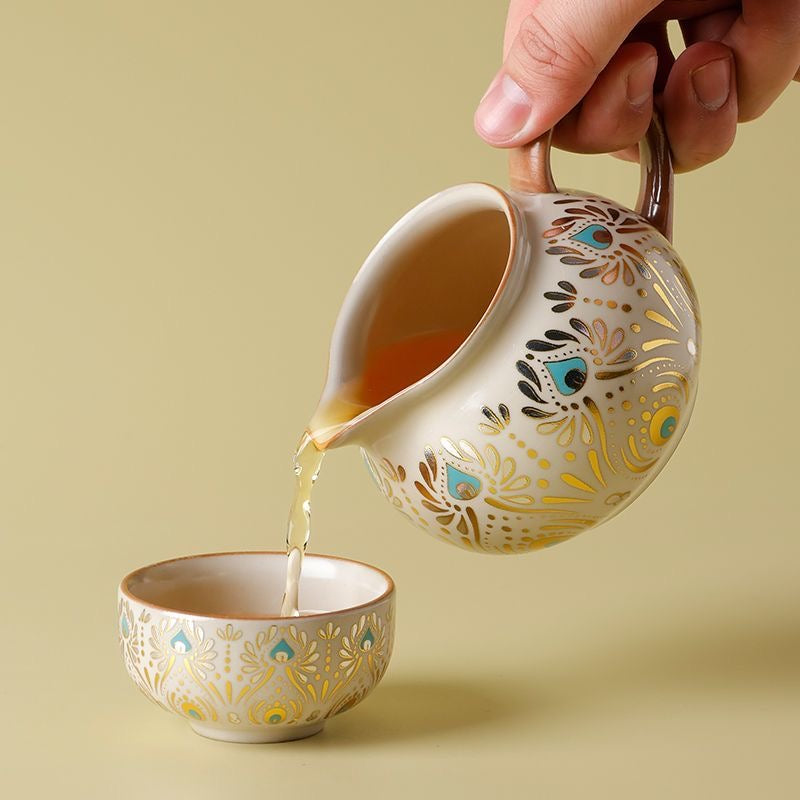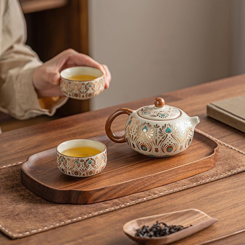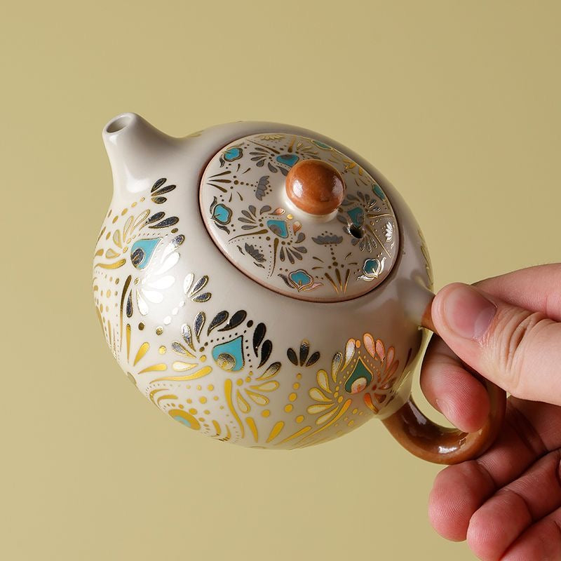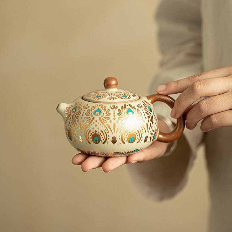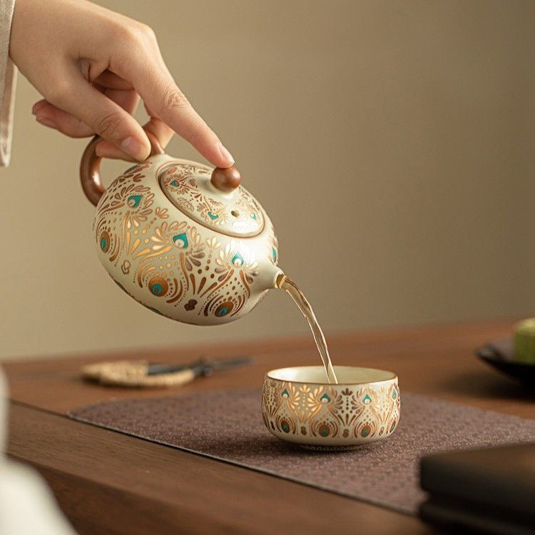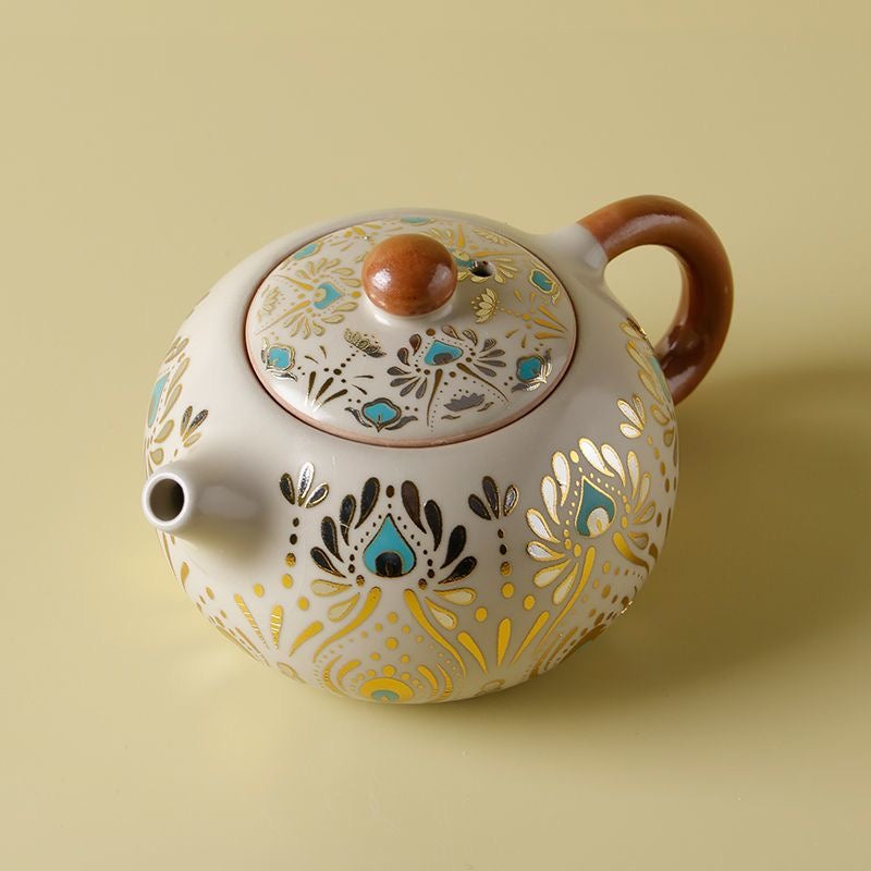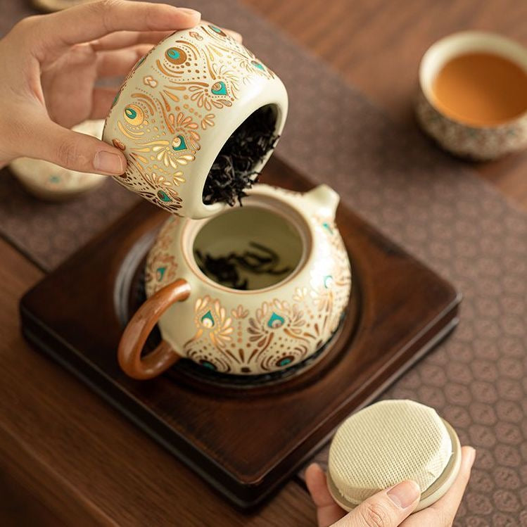 Elevate your daily tea ritual with this Dehua ceramic gongfu teaware, inspired by a refined Dunhuang-style pattern and crafted with traditional ceramic craftsmanship in Dehua—China’s porcelain capital. The teapot offers a smooth, controlled pour with a snug-fitting lid, making it ideal for gongfu tea brewing and everyday steeping.