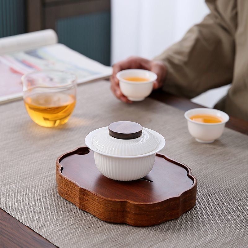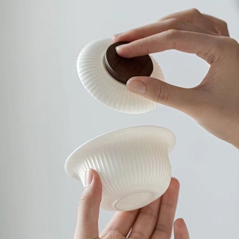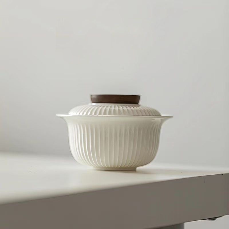 Bring calm, modern elegance to your tea ritual with this Dehua ceramic gaiwan, crafted in Dehua—China’s renowned porcelain capital—and fired at high temperature for a clean, durable finish. The softly ribbed (fluted) body adds grip and visual texture, while the warm ivory “mutton-fat jade” white tone keeps the look minimal and refined—perfect for a tidy, contemporary tea table.