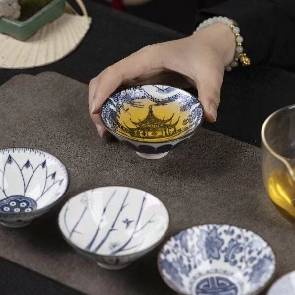 Discover elegance and artistry in your gongfu tea ceremony with this refined Dehua porcelain douli tea cup. Featuring classic blue-and-white inspired motifs, each cup brings a calm, poetic charm to your tea table.