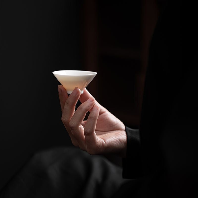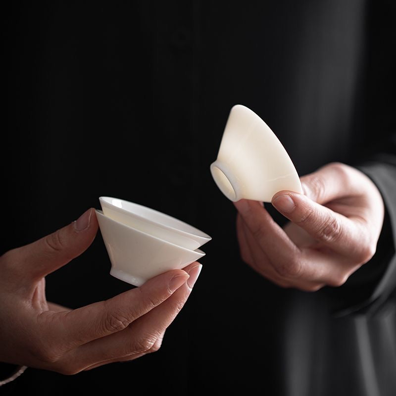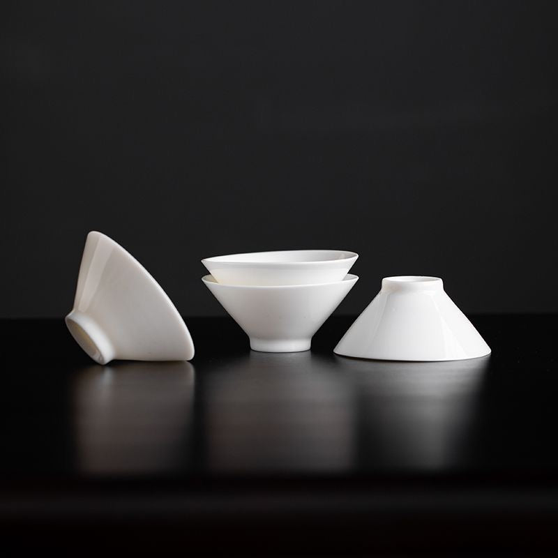Discover elegance and quiet refinement in your gongfu tea ceremony with this minimalist Dehua jade-white porcelain douli tea cup. Inspired by the classic conical “douli” silhouette, its clean lines and soft white glaze create a serene and poetic tea experience.