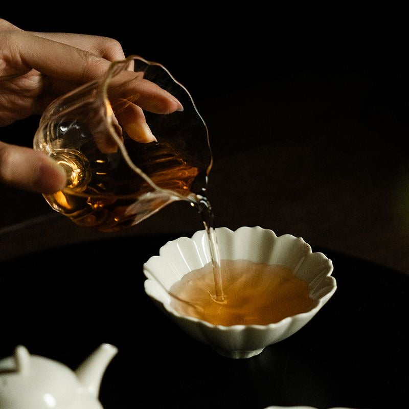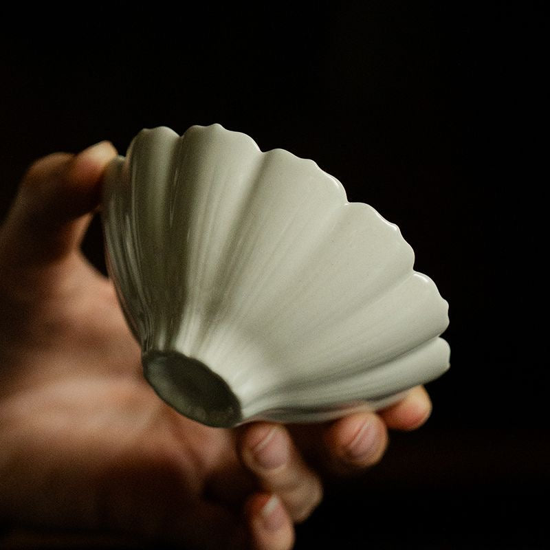Discover quiet elegance in your gongfu tea ceremony with this sculptural Dehua “Silent Lotus” tea cup. Shaped with lotus-petal fluting and finished in a soft wood-ash tone, it brings a serene, minimal aesthetic to your tea experience.