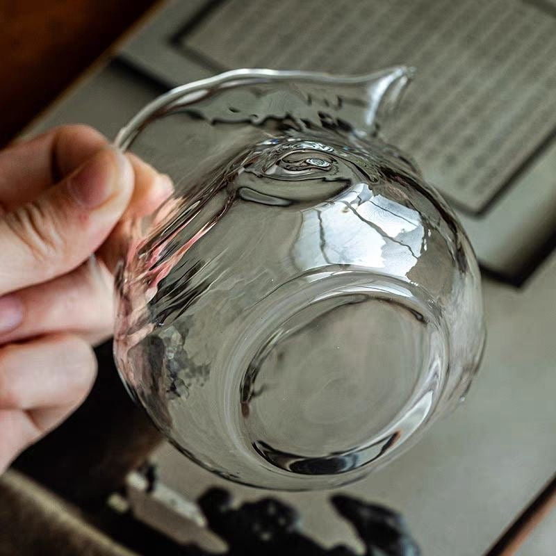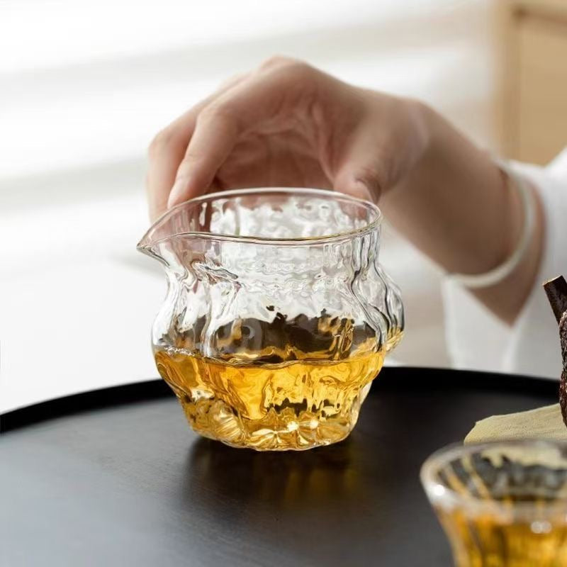 Add a little movement and sparkle to your tea session with this textured glass gongdao cup (fairness pitcher / cha hai). The wavy, ripple-like body catches the light beautifully, while the clean spout helps you pour smoothly and share tea evenly—so every cup tastes the same from first pour to last.