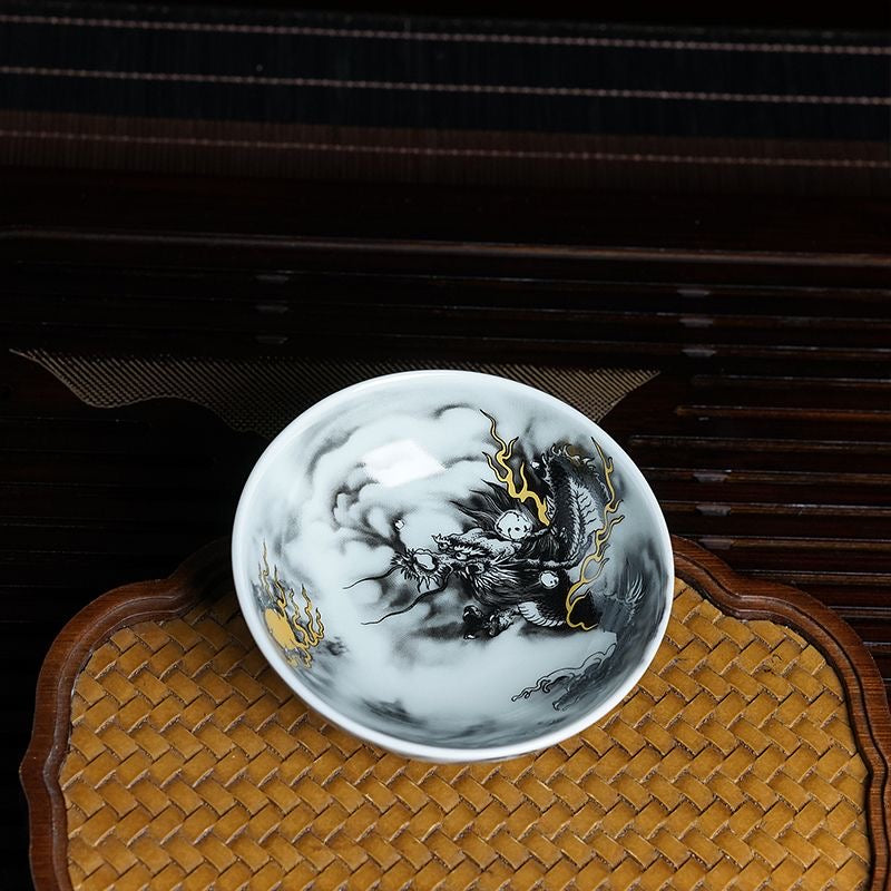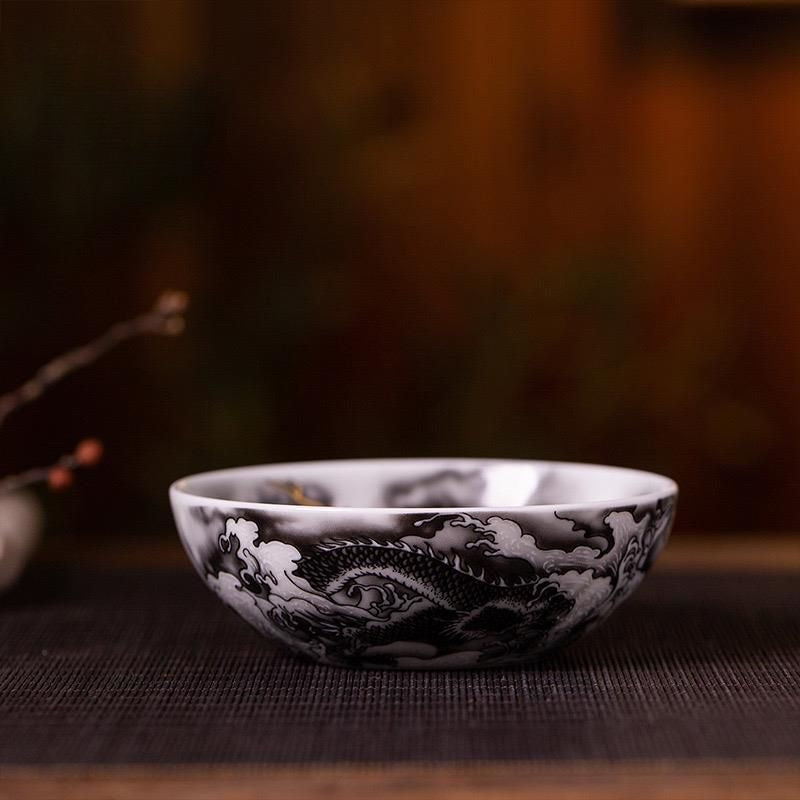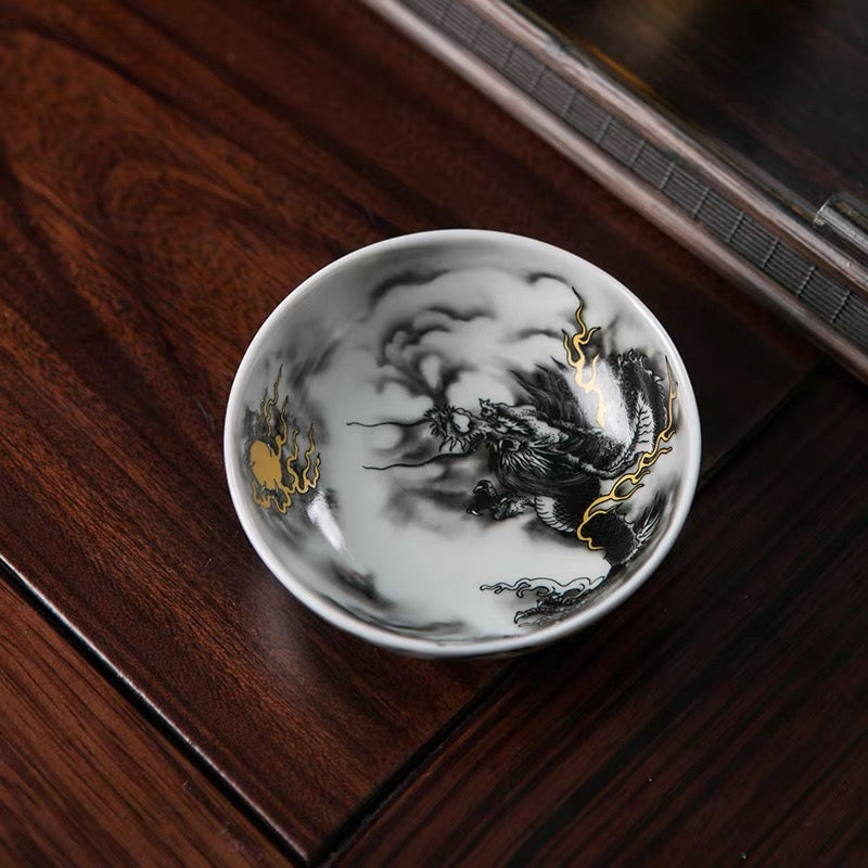 Discover elegance and artistry in your gongfu tea ceremony with this striking hand-painted ink dragon tea cup. Crafted in ceramic and painted with expressive ink-wash style brushwork, the dragon motif brings a bold, poetic spirit to your tea experience.
