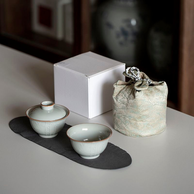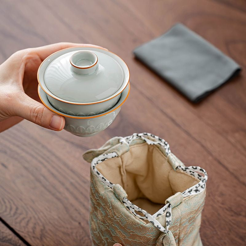 Made for personal tea drinking moments, this minimalist ceramic set is a compact adult tea set designed for office tea drinking and relaxed outdoor tea drinking. Brew clean, traditional gongfu tea with a small lidded gaiwan and matching cup—perfect when you want a quiet, focused tea ritual without a full table setup. The included fabric storage pouch keeps everything protected and ready to go, so your personal tea drinking routine can move easily from home to desk to travel.