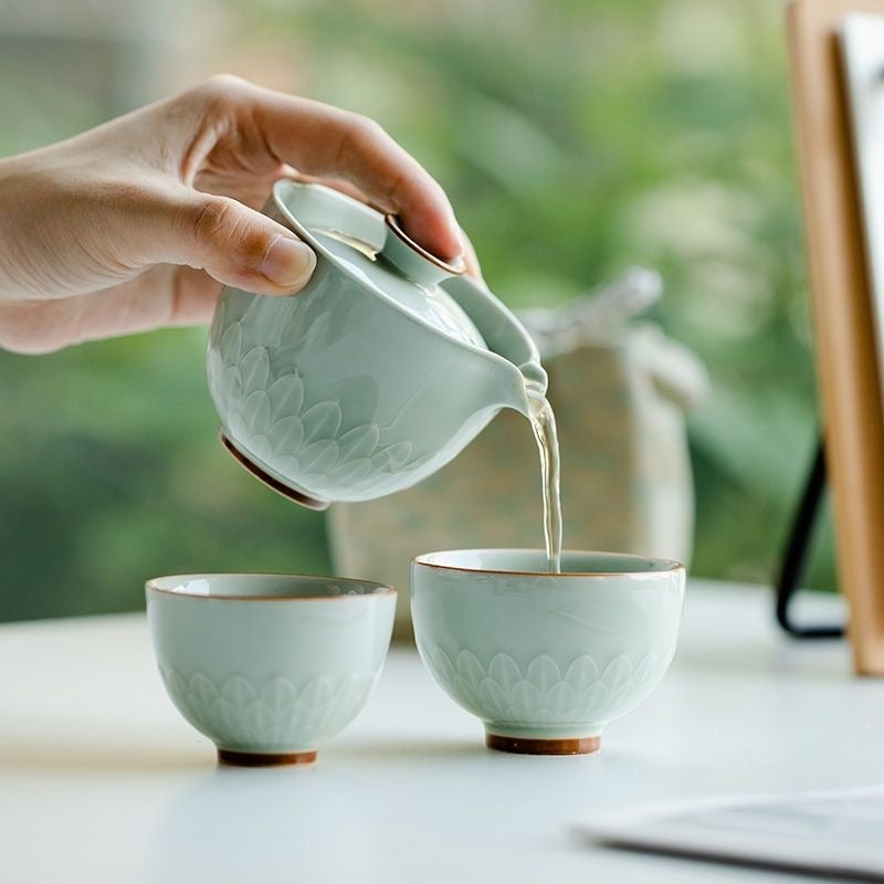 Made for personal tea drinking, this Vintage Blue Lotus ceramic set is a refined adult tea set designed for everyday gongfu tea—whether you’re doing office tea drinking at your desk or enjoying relaxed outdoor tea drinking on the go. The compact teapot features a built-in strainer for smooth pouring, keeping your gongfu tea routine simple, clean, and satisfying—perfect for personal tea drinking when you want quality without a full tea table.