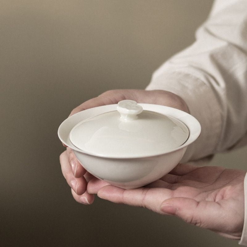 Clean, quiet, and timeless—this minimalist white ceramic gaiwan brings a calm, modern feel to traditional Chinese tea brewing. Its smooth curves and balanced proportions make it an elegant everyday piece for your gongfu tea ritual.